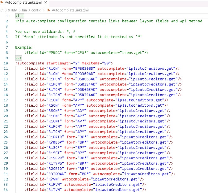 - Place the Live search configuration file AutocompleteLinks.xml on IP1 XT Server in folder \XTBM\bin\config.