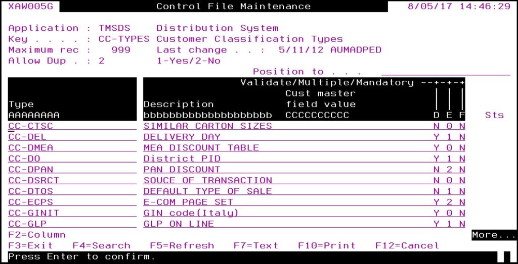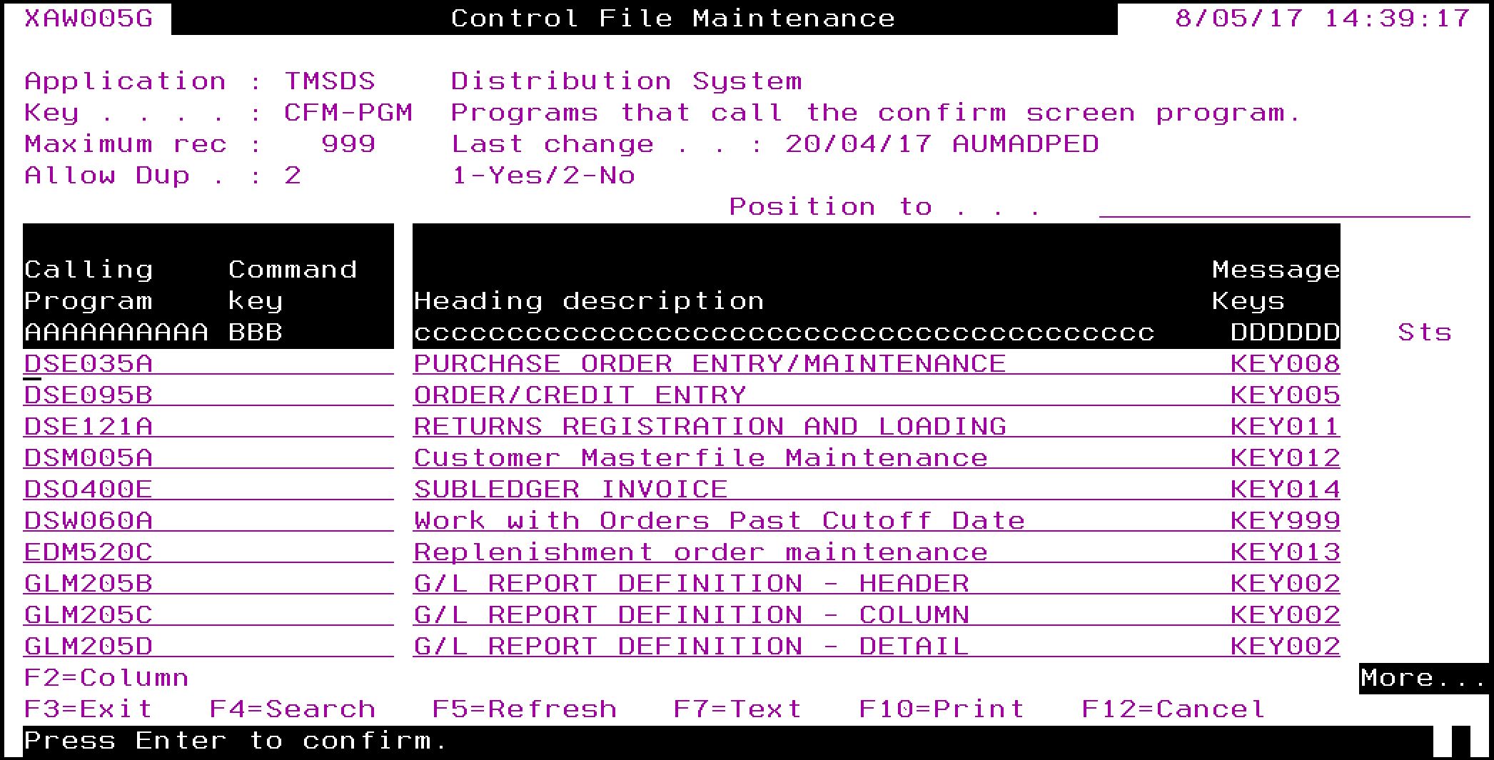 | TMSDS/CFM-PGM Programs that call the confirm screen program |