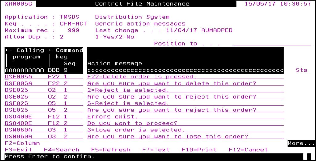 | TMSDS/CFM-MSG Generic confirm screen messages |