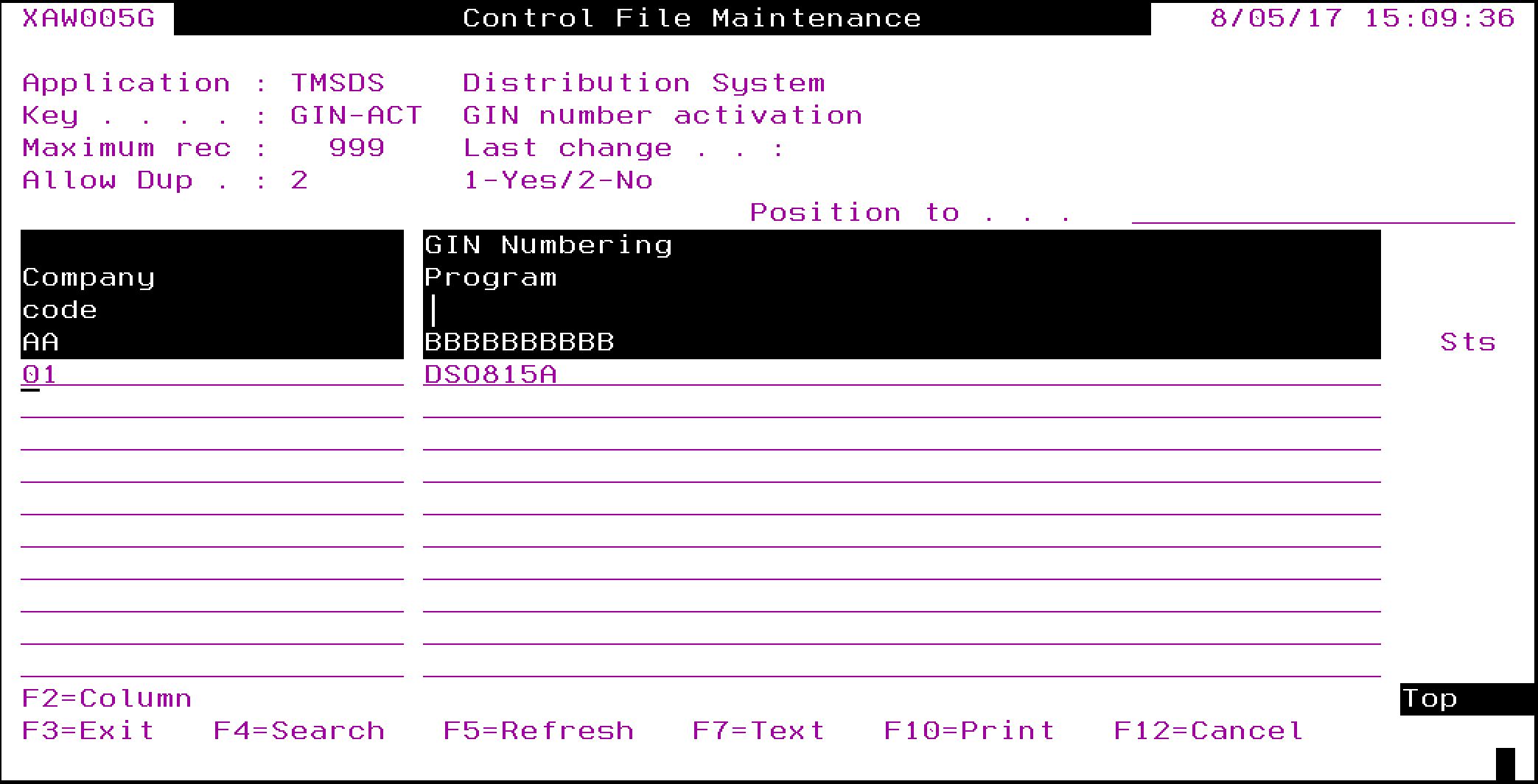 Activate GIN by company, with a call to DSO815 (GIN number assignment program). |