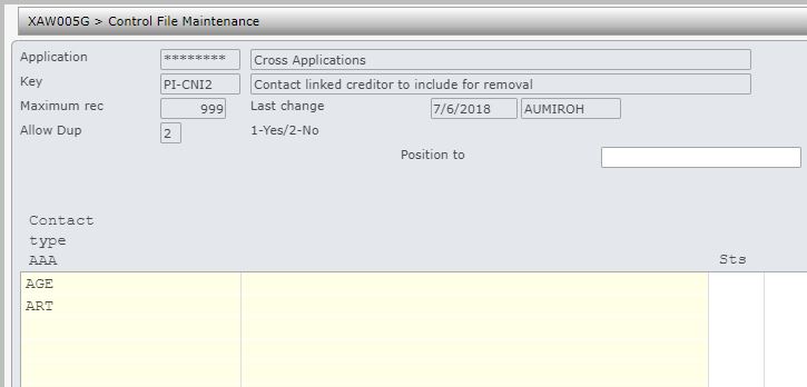 - For PI removal for a contact with a linked creditor (with a 1-1 relationship), linked creditor PI would also be removed if the contact type is in the list of contact types defined in control ********/PI-CN2.