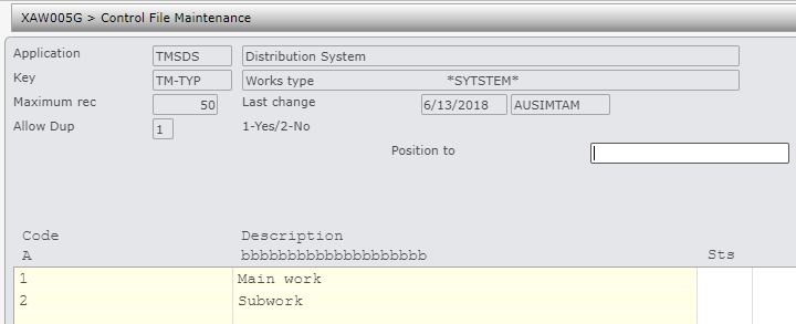 | TMSDS/TM-TYP Works type | This system defined control file differentiates between work and subwork. |