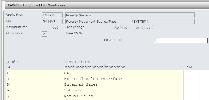 | TMSRY/RY-MMF Royalty Movement Source Type | This system control file holds the various movement source types. |