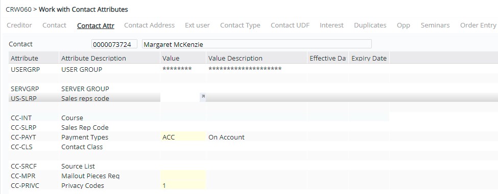 Work with CRM User Options allows a user belonging to a User group to have access to the CRM options linked to the User group. The user is linked to the User group via Contact Attributes.