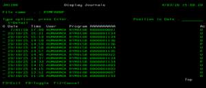 - In the menu, expand Other Options > Cross Applications Support > Journal Management and then select Generic journal display file changes. JNI200 Display Journals panel appears, listing all the database files in the log.